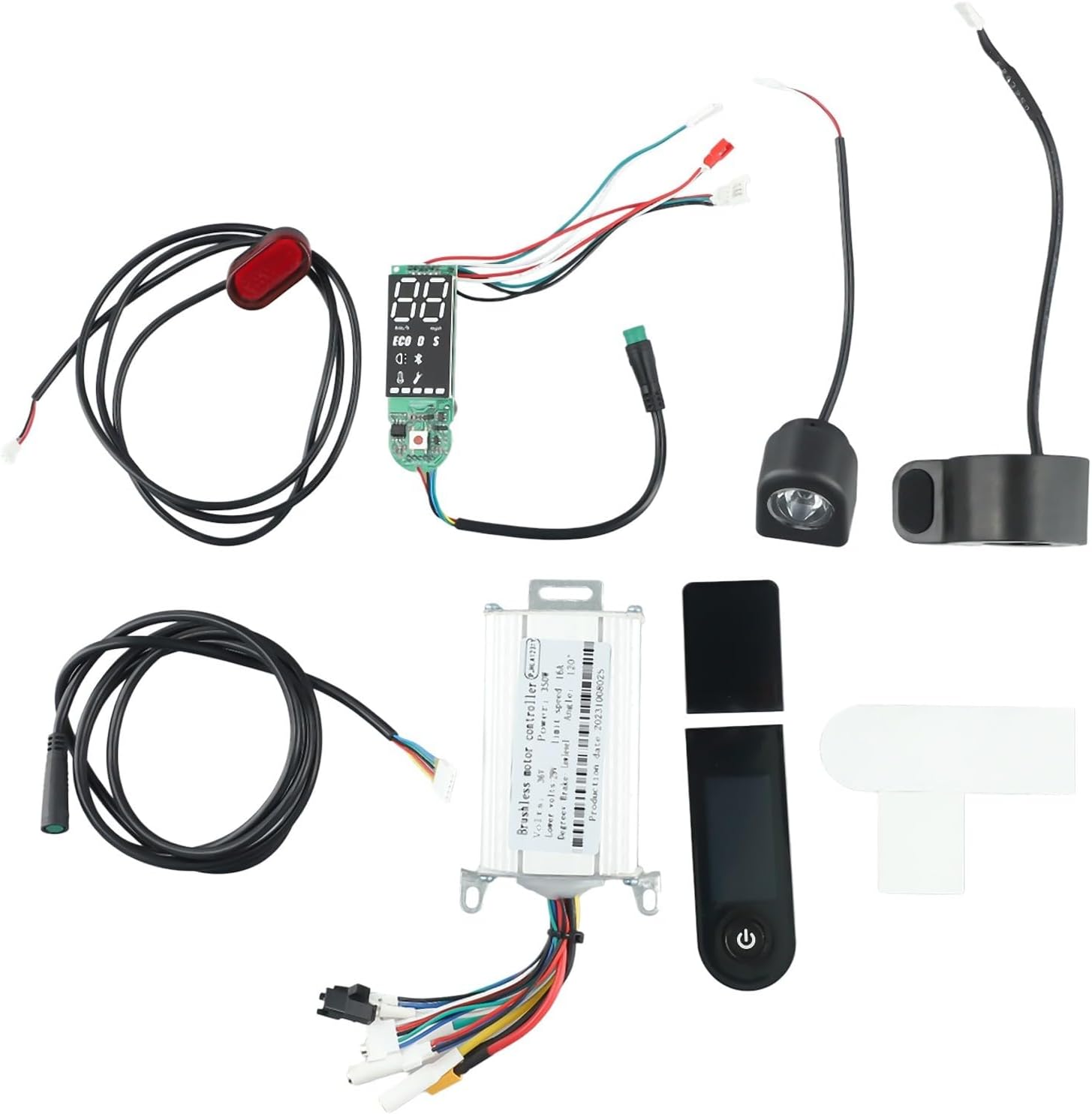 Warn ing: It is illegal to ride electric scooters on public roads, pavements, or cycle paths. They are intended only for use on private land with for the owner's permissionCustomers who buy A or B sets should pay attention: if 9E error occurs after you complete the assembly, it means that your handbrake the controller connection line of the set do not match. Please go to the nearby repair shop to find a professional for adjustment, or purchase the handbrake of this link to use together!!!Description:*High-performance 32-bit MCU* for Protection function for abnormal conditions such as overvoltage, overcurrent, overheating undervoltage*Cruise at fixed speed;Brake energy recovery*350W 36V 15A Scooter Controller Board Motherboard with Led Display with APP Hover Board Controller*Suitable for electric scooter complete set replacement*Speed: The low speed is 15±2km/h; the high speed is 25km/h(maximum)Instruction:. Battery display:33v-36v The first light is long36v-37v or two lights long bright37v-38.5v or two lights long bright38.5v or more,, two, three, four lightsLow voltage alarm: The first light flashes when the battery is below 33V, the buzzer sounds times.7. Low voltage alarm speed mode: The speed limit is about 15Km/h. When the power returns to 37V,the throttle must return to the initial position to release the low voltage return to normal.8. Constant speed cruise: The speed is stable for about seconds to automatically start the cruise control after the cruise is fixed, the throttle can be released; press the brake or push the throttle again to release the cruise control and enter the manual mode.9. Speed: The low speed is 15±2km/h; the high speed is 25km/h(maximum)