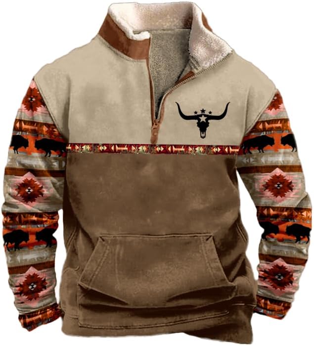 Bengbobar Western Cowboy Sweatshirts For Men Long Sleeve Half Zip Pullover Crewneck Lightweight Cool Hoodies With Pocket