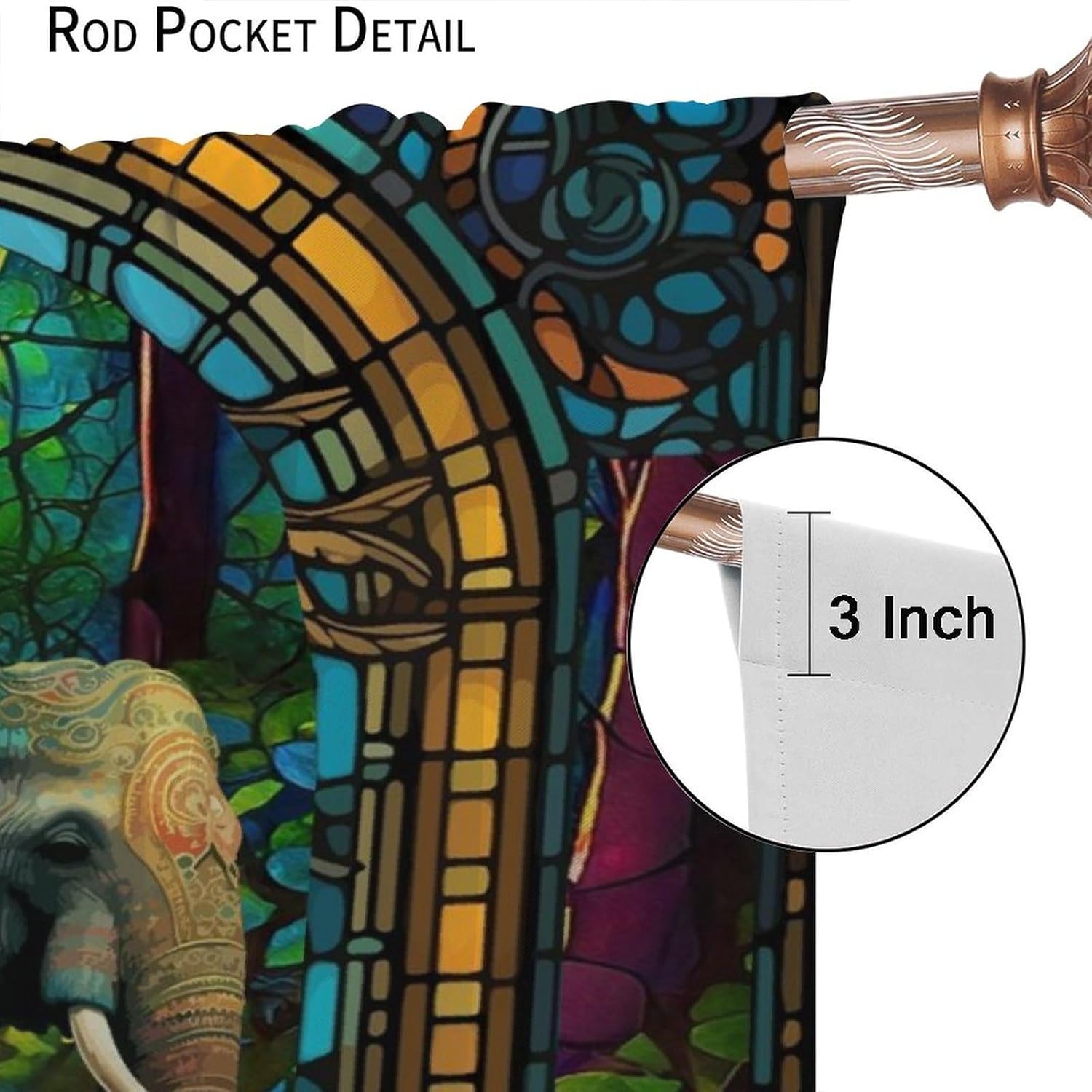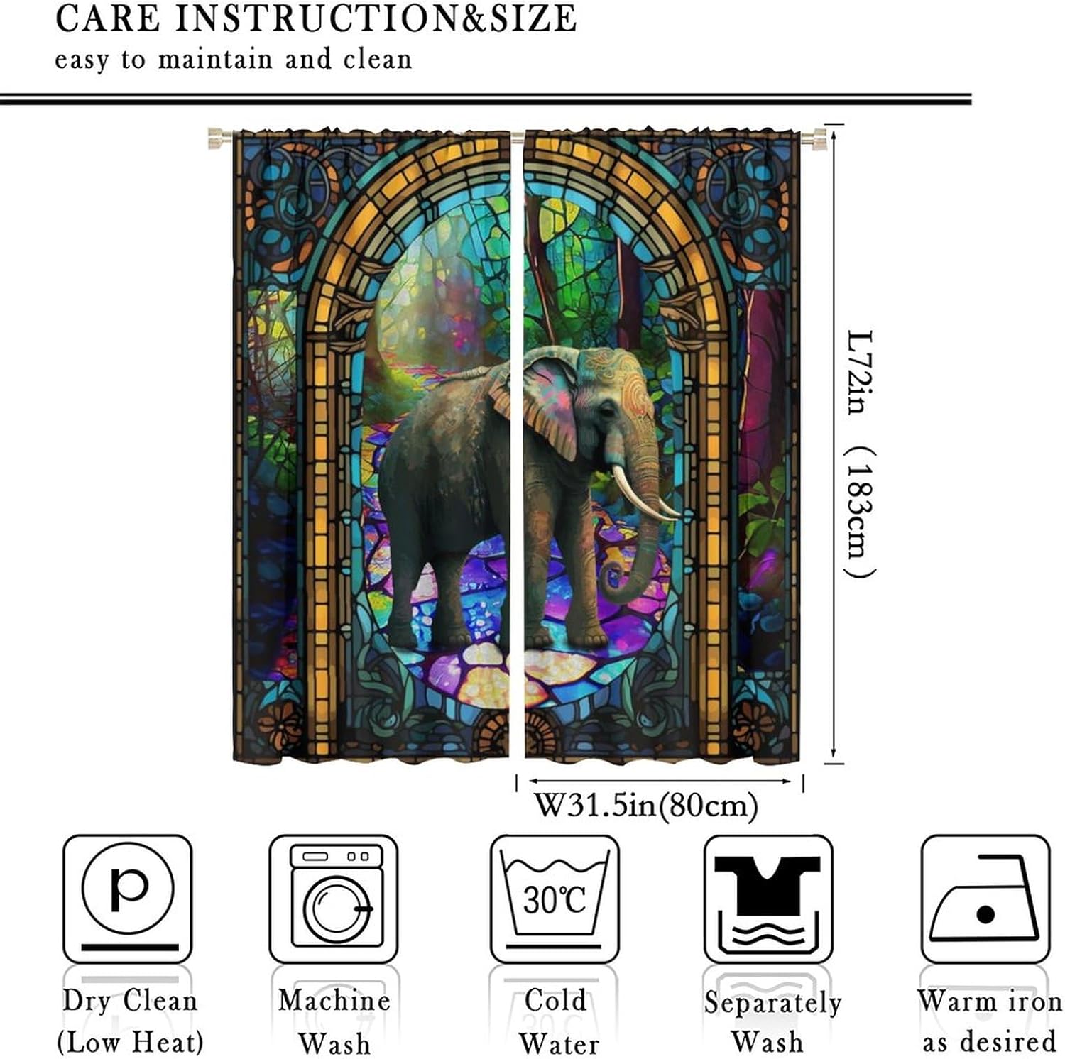 brebasf Boho Mid Century Elephant Patterned Blackout Curtains Comes in eight sizes: Total size: 45" L × 42" W (114cm × 107cm),Includes two pieces, each of which measures:45" length × 21" width (114cm × 53.5cm). Total size: 54" L × 42" W (137cm × 107cm),Includes two pieces, each of which measures:54" length × 21" width (68.5cm × 53.5cm). Total size: 63" L × 42" W (160cm × 107cm),Includes two pieces, each of which measures:63" length × 21" width (160cm × 53.5cm). Total size: 63" L × 55" W (160cm × 140cm),Includes two pieces, each of which measures:63" length × 27.5" width (160cm × 70cm). Total size: 63" L × 63" W (160cm × 160cm),Includes two pieces, each of which measures:63" length × 31.5" width (160cm × 80cm). Total size: 72" L × 63" W (183cm × 160cm),Includes two pieces, each of which measures:72" length × 31.5" width (183cm × 80cm). Total size: 63" L × 72" W (160cm × 183cm),Includes two pieces, each of which measures:63" length × 36" width (160cm × 91.5cm). Total size: 84" L × 84" W (214cm × 214cm),Includes two pieces, each of which measures:84" length × 42" width (214cm × 107cm). This Abstract Spring Garden Plant Arch Wildlife Elephant Curtains liven up your indoor or outdoor spaces with a sense of airiness and beauty.Function: 1. Made of durable polyester fiber,soft and light. 2 The package includes: 2 panels. Curtain material: 98% polyester fiber. Provide a beautiful appearance for your bedroom,living room or office. 3. The curtains are grommet,which can be used with any standard curtain rods. Our products can be used as living room,room curtains. Mother's Day,Christmas,Halloween,Thanksgiving,New Year's party decorations at home! We believe that you will like this curtain as much as we do. If you are not satisfied with our products,please contact us,we will solve any problems encountered by the products for you,so that you are satisf