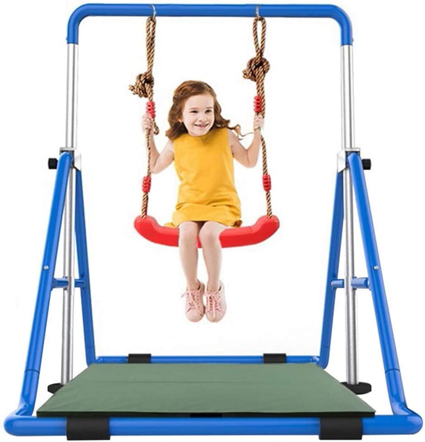 Welcome to my shop,My products have been thoroughly tested, inspected and packed before delivery, please rest assured to buy.If you have any questions, please feel free to contact me so that I can provide you with the best service.Features:Our gymnastic junior training bar is perfect for beginner gymnast aged 3 to 7 year old. It will be a ideal gift for your kids to start their exercise for better body shape They will enjoy endless fun and active playtime.You can place the expandable gymnastics training bar in the fitness room, children's toy room, garden or living room. Your children can exercise when they are bored. It will bring a lot of fun to your kids and keep your kids from getting addicted to electronics all day.The assemble and disassemble is simple and fast. When not in use, you can just put it in every little corner. It's very strong, and it can accompany your child well when you can't spend time with them.Specifications:Material: Steel pipe (durable)Expand the Size: (Length*Width*Height) 108*148.5*85-129.5cm ( adjustable)Folding Size: (Length*Width*Height) 100*43*85-129.5cm (adjustable)Package Size: Approx.103 * 34 * 9.5cmLoad-bearing: About 100 kgNet weight: About 16.5kgColor: Blue, RedPackage List:1*Kids Gymnastic Bars1*Swing1*Cusions