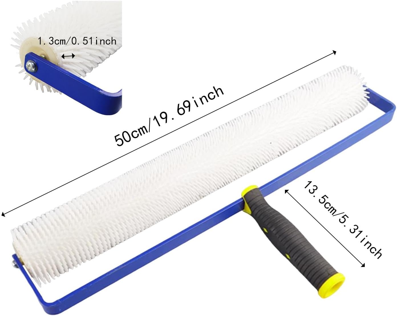 Description: - 【Professional Tool】: This effective bubble removal roller features 13mm spikes that penetrate epoxy coatings to release trapped air, ensuring smooth, professional grade floor finishes - 【Dimensions】: With a 50cm working width and strategically spaced spikes, this practical tool efficiently covers large floor areas while providing thorough bubble removal - 【Materials】: Made of PE, metal material, this reliable vent roller withstands rigorous use in commercial and industrial flooring applications - 【Versatile Application Range】: Suitable for various floor coating projects including epoxy, resin, and self leveling compounds, this professional floor coating roller delivers results - 【Roller Dimensions】: 50cm width (19.69 inches), 13mm spike height (0.51 inches), designed for professional floor coating applicationsPackage Includes:1 20 Inch Bubble Removal RollerNote:Please allow slightly errors 1-2cm/0.39-0.79inch differences due to manual measurement.