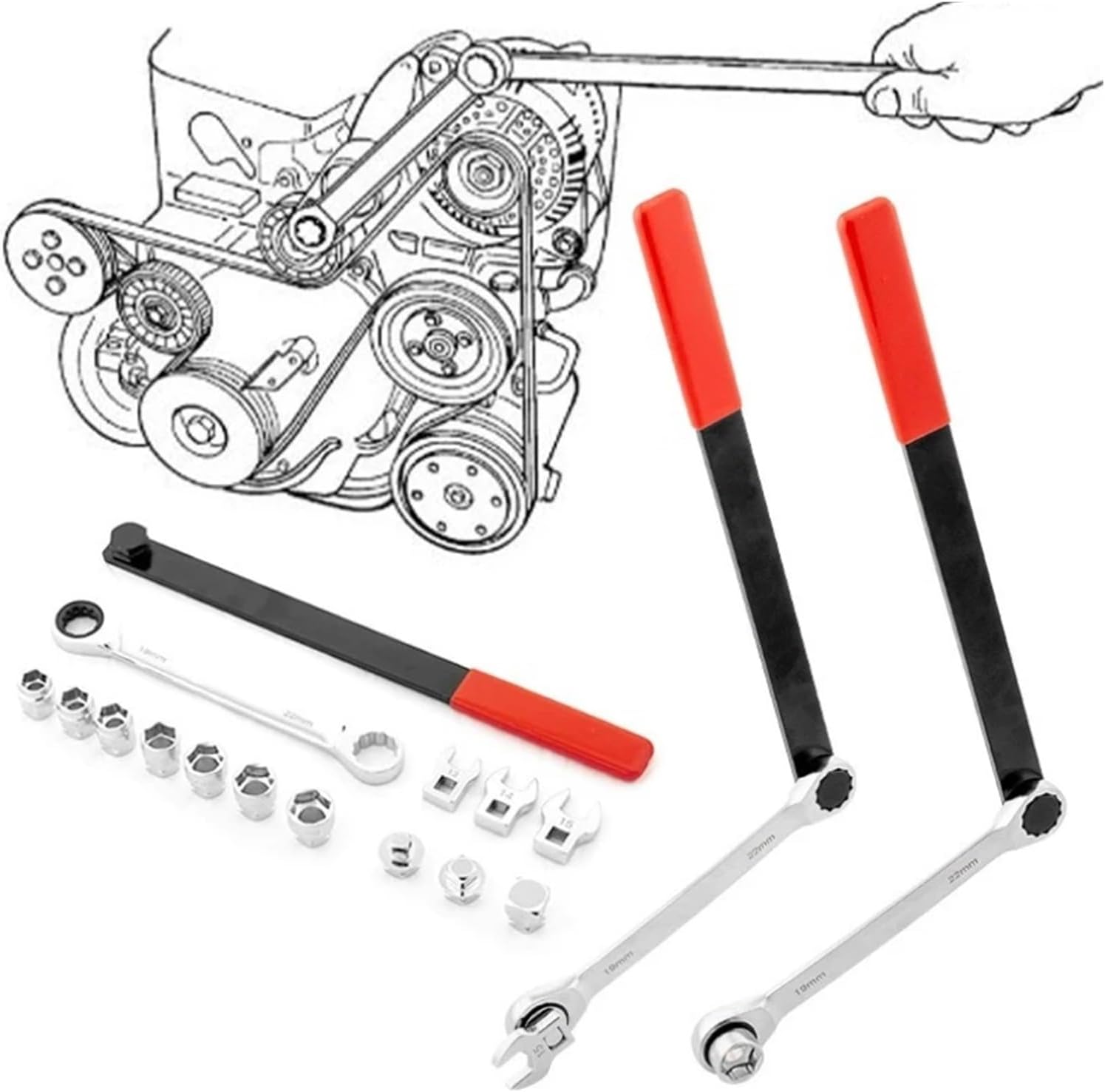 Ratcheting Serpentine Belt Tool Set - 15 PieceProduct featuresThis product is an idler pulley support wrench adjusting tool;it is used in the removal and installation of the belt, with spring idler adjustment tool.This idler pulley adjustment tool comes with:Hexagonal sockets: H13, H14, H15, H16, H17, H18, H19;Open-end wrench joints: 13mm, 14mm, 15mm;Three inch square fittings: 3/8", 1/2", 3/4".==========Suitable Compatible with : Metal: Origin : Mainland ChinaWelcome to our auto parts section! Serve every customer wholeheartedly, letting you shop worry-free and use comfortably~