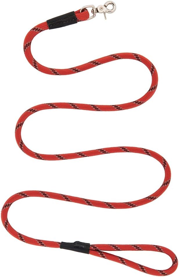 In color combinations to match our line of Terrain D.O.G. Collars, this leash is made from round braided climbing style nylon rope with a polypropylene core to withstand rugged use. Top grain leather keepers cover the sewn ends for a finished, refined look. Scissor snap for easy attachment to collars and harnesses.