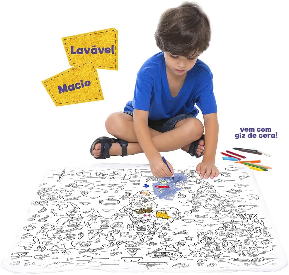 Toyster's World Map Paint Mat is a creative activity that combines fun, color, and imagination in a large and engaging format. Washable and reusable, it can be colored multiple times, making the play even more interesting for children who like to draw, paint and explore new ways to create. With a large map to color, the product invites the child to use creativity while filling different parts of the picture. It is a fun option for moments of artistic expression, with a practical and reusable proposal that extends the use time of the product. Made 100% in Brazil, the Toyster Paint Mat follows an international quality standard and comes with 1 paint mat and 1 crayon kit. Made of PVC, foam, non-toxic paint and crayons, it measures 27 x 25 inches and is suitable for children ages 4 and up.